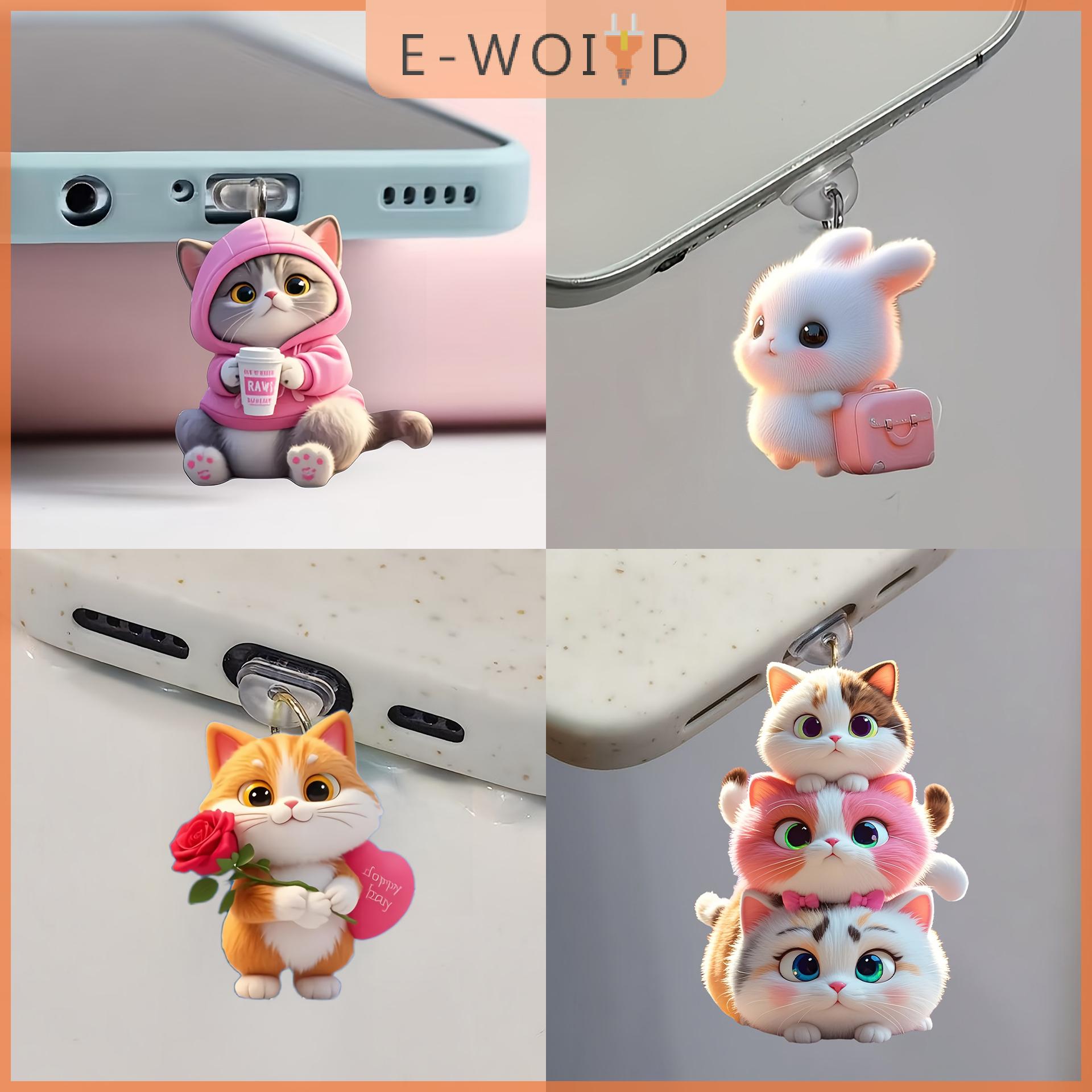 YUYIN4 ปลั๊กอะคริลิคกันฝุ่นโทรศัพท์รูปสัตว์น่ารักๆอุปกรณ์เสริมป้องกันฝุ่นสำหรับพอร์ตชาร์จโทรศัพท์ iPhone Type-C