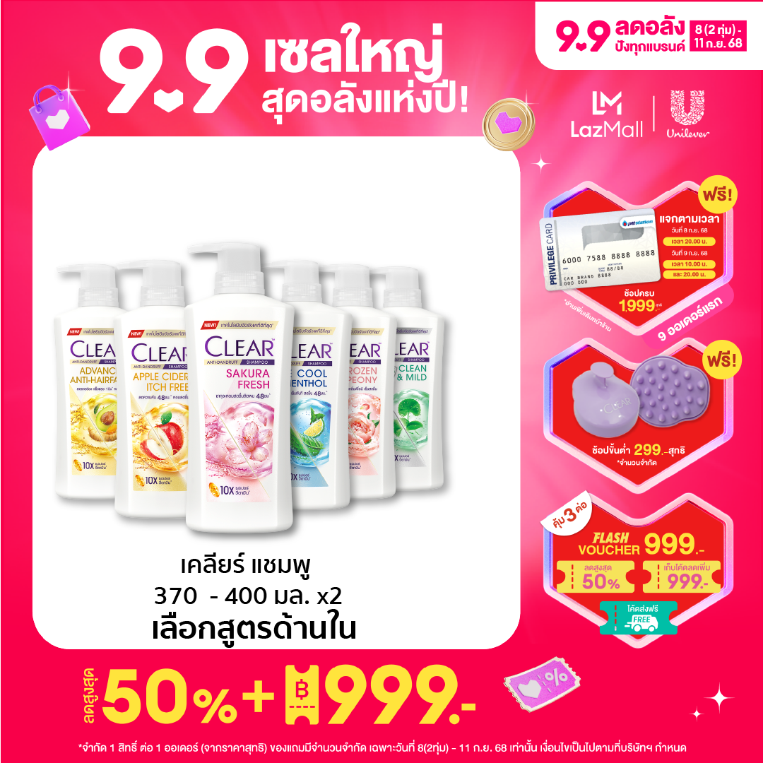 CLEAR Anti Dandruff Shampoo (2 bottles) เคลียร์ แชมพูขจัดรังแค (2 ขวด)