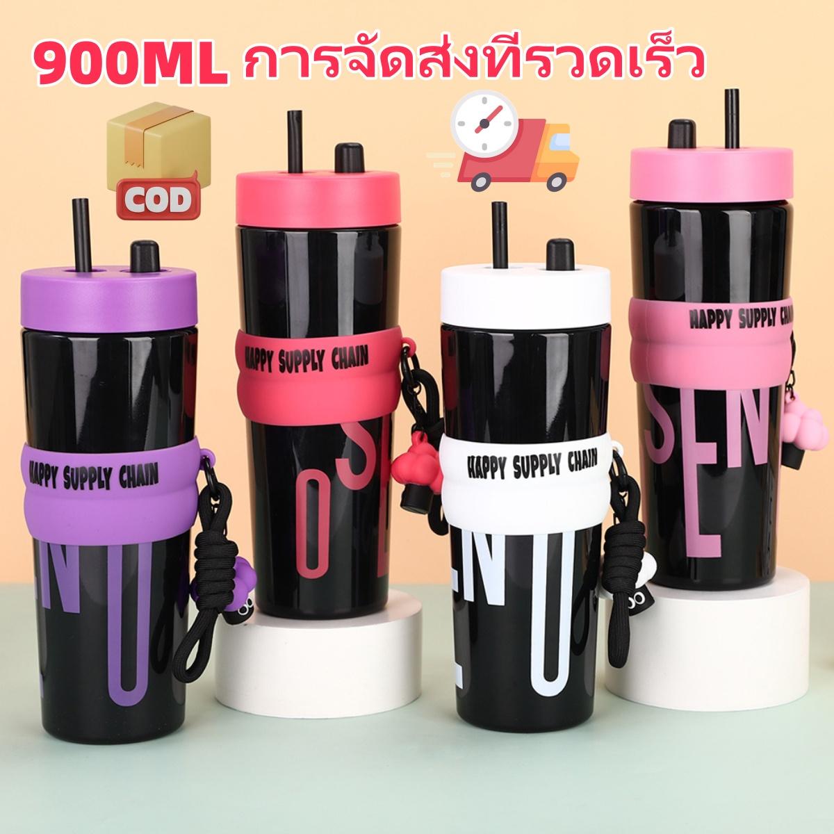 LVYIMAO [การจัดส่ง 3 วัน] 900MLถ้วยฟางโดปามินความจุขนาดใหญ่ 900ML ขวดน้ำเก็บความเย็นความจุขนาดใหญ่ 9000 มล ถ้วยพกพาน้ำพลาสติกขวดน้ำกลางแจ้งเดินทางถ้วยน้ำหนา ของขวัญจบการศึกษา ️