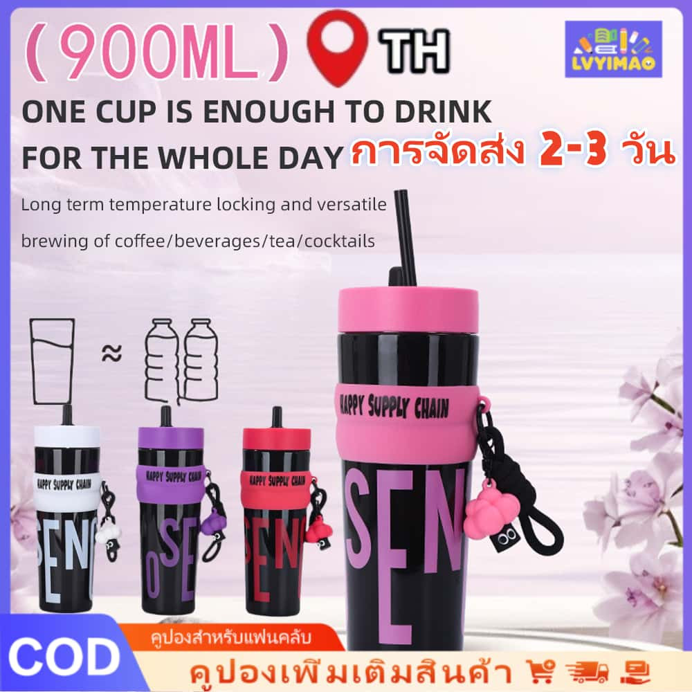 LVYIMAOจัดส่ง 2-3 วัน】ถ้วยฟางโดปามินความจุขนาดใหญ่ 900ML ขวดน้ำเก็บความเย็นความจุขนาดใหญ่ 9000 มล ถ้วยพกพาน้ำพลาสติกขวดน้ำกลางแจ้งเดินทางถ้วยน้ำหนา ของขวัญจบการศึกษา ️