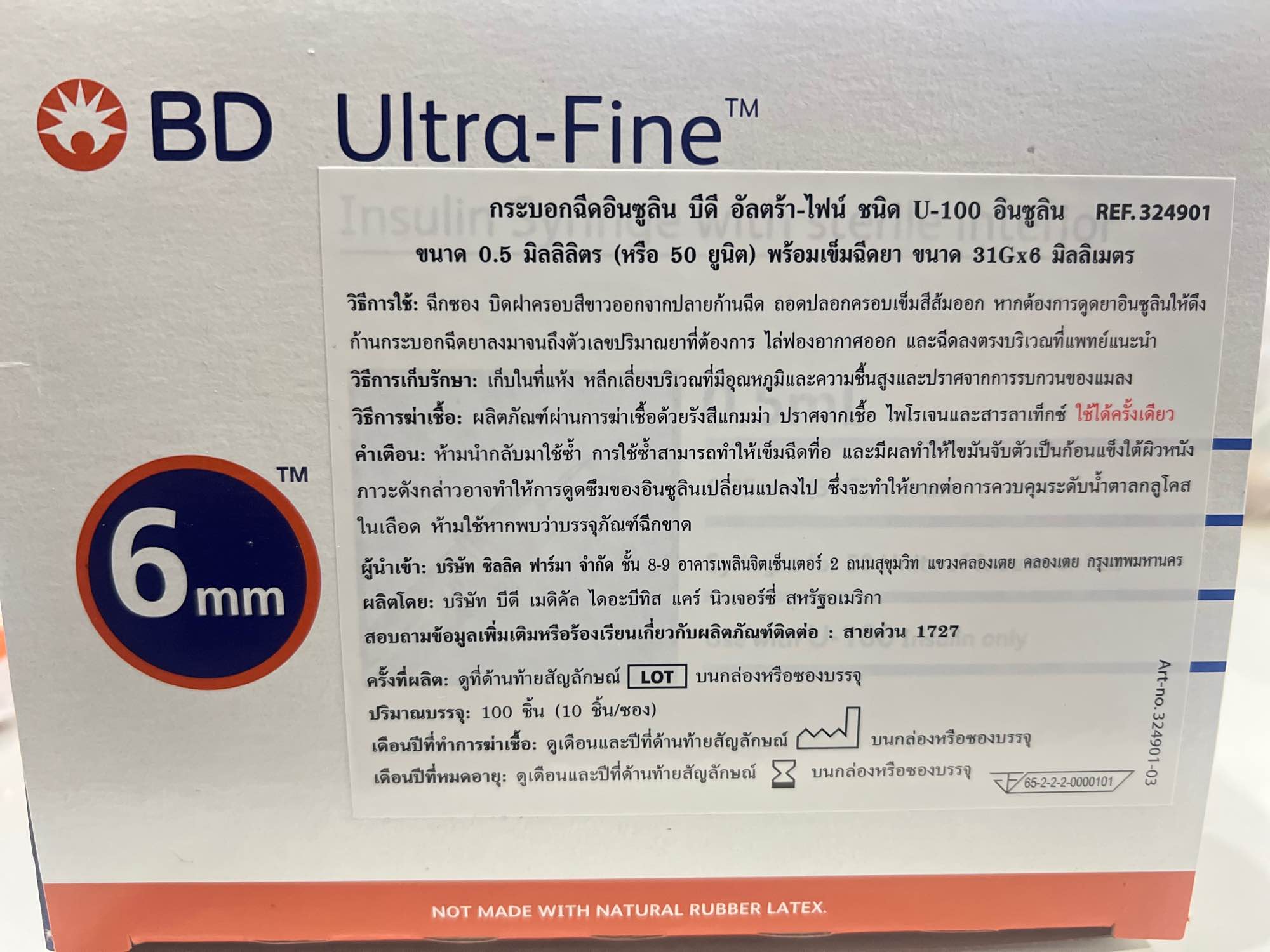 กระบอกดูดสารละลาย BD SYRING 6mm 0.5ml 1 กล่อง บรรจุ 100 ชิ้น