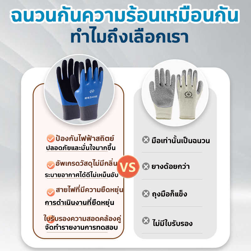 ผ้า. คุณสมบัติ: ผลิตจากวัสดุคุณภาพดี ปลอดภัย และทนทานต่อการใช้งาน. ยางธรรมชาติ ความยืดหยุ่นสูง ฉนวน ความเป็นพลาสติก และลักษณะเด่นอื่นๆ. ถุงมือฉนวนไฟฟ้าแรงสูง 400V. สามารถใช้เป็นถุงมือนิรภัยสำหรับช่างไฟฟ้า. ช่วยปกป้องคุณจากงานไฟฟ้า. วัสดุ: ยาง. สี: สีแดง. ความยาว: 40 ซม. โปรดให้ความแตกต่างเล็กน้อยเนื่องจากการวัดด้วยมือที่แตกต่างกัน). การใช้งาน: เพื่อป้องกันคนงาน ช่างไฟฟ้าจากการบาดเจ็บจากไฟฟ้าช็อต. คำเตือน: โปรดตรวจสอบให้แน่ใจว่าผู้ใช้สวมถุงมือเมื่อมือแห้ง. แพ็คเกจประกอบด้วย: ถุงมือฉนวน 1 คู่. ถุงมือฉนวน ป้องกันไฟฟ้า400-600V ซ่อมบำรุงวงจร ถุงมือใส่ทำงาน ถุงมือทำสวน ถุงมือนิรภัย ถุงมือช่าง ถุงมือกันหนาม ถุงมือกันบาด ถุงมือเคลือบยาง