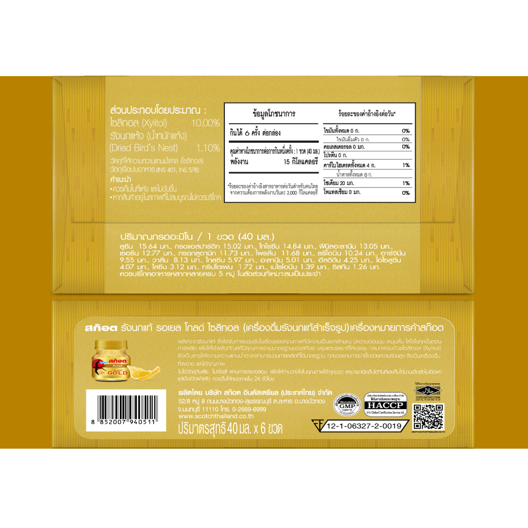 สก๊อต รังนกแท้ รอเยล โกลด์ น้ำตาล 0% 40 มล. ผลิตภัณฑ์สก๊อตคุณภาพสูง ผลิตจากรังนกแท้ 100% ปรุงแต่รสชาติให้อร่อยด้วยไซลิทอล แทนน้ำตาล แพ็ค 6 ขวด ราคาคุ้มค่า เหมาะเป็นของขวัญวันแม่และปีใหม่. – Lazada