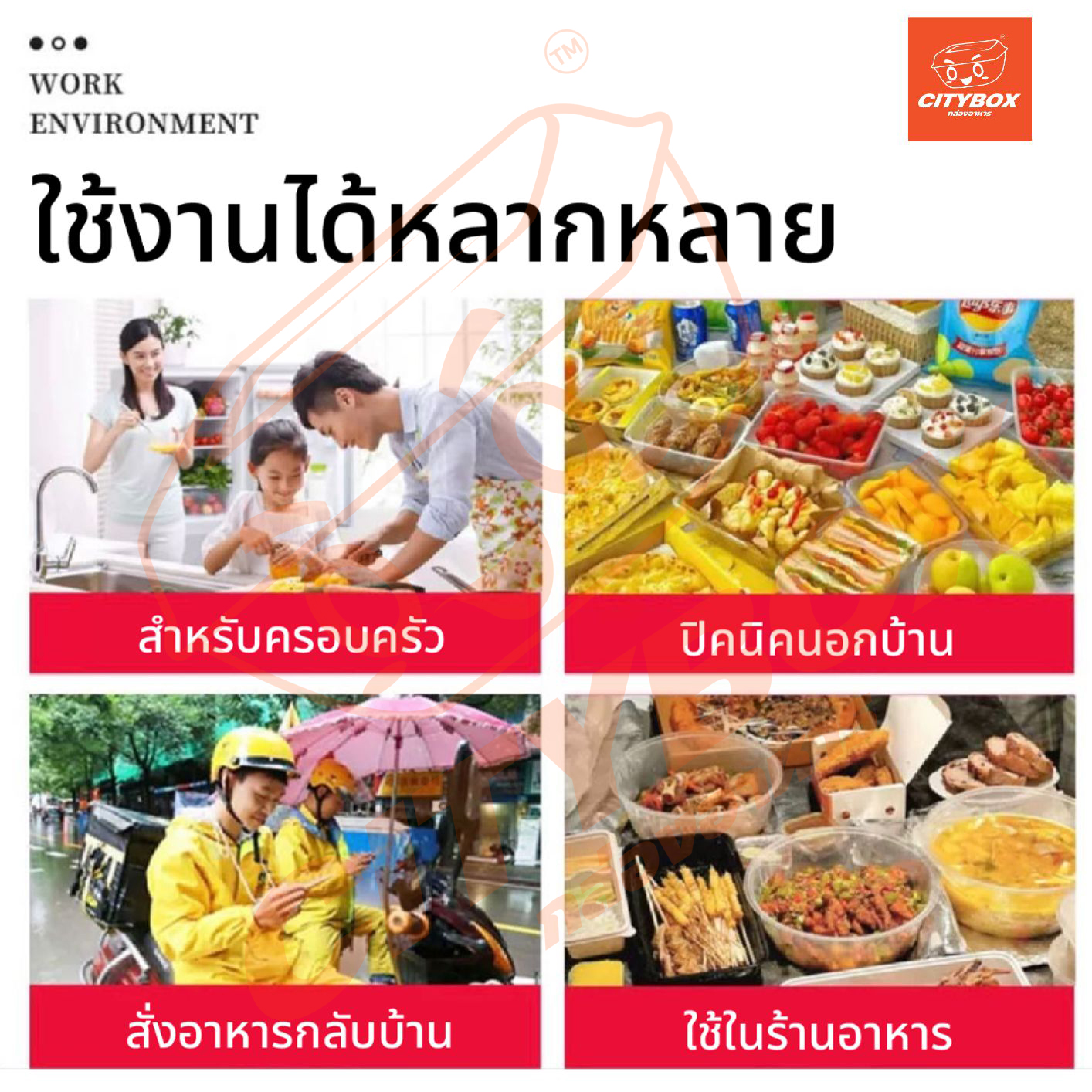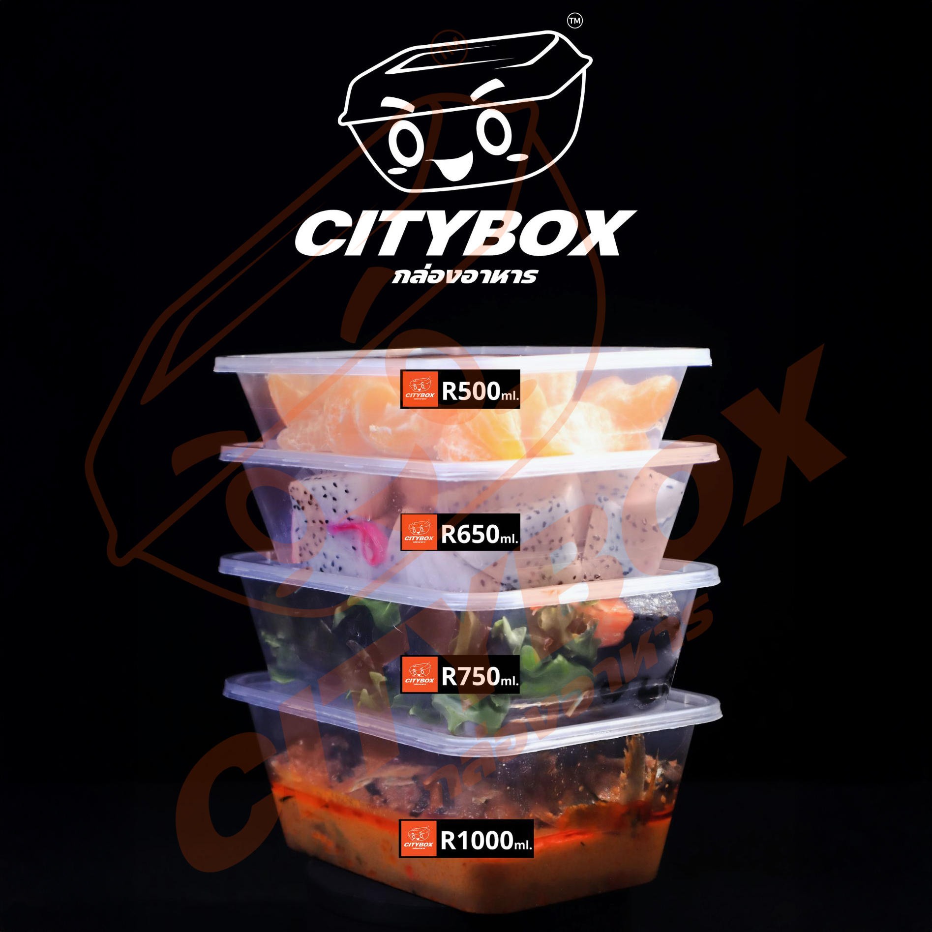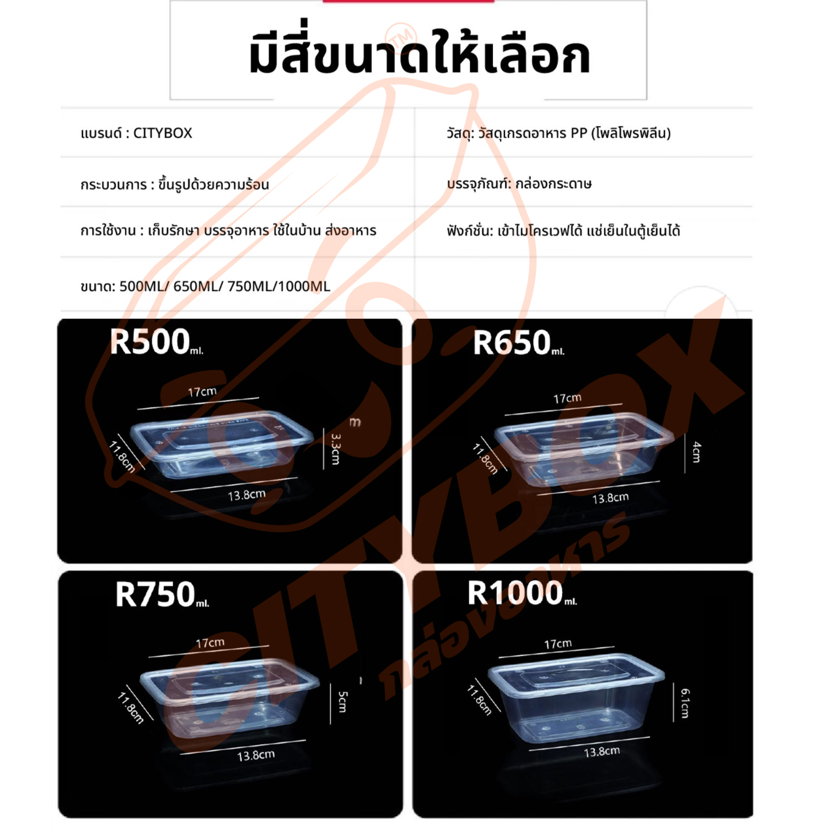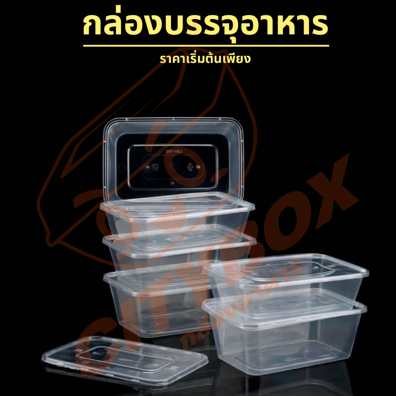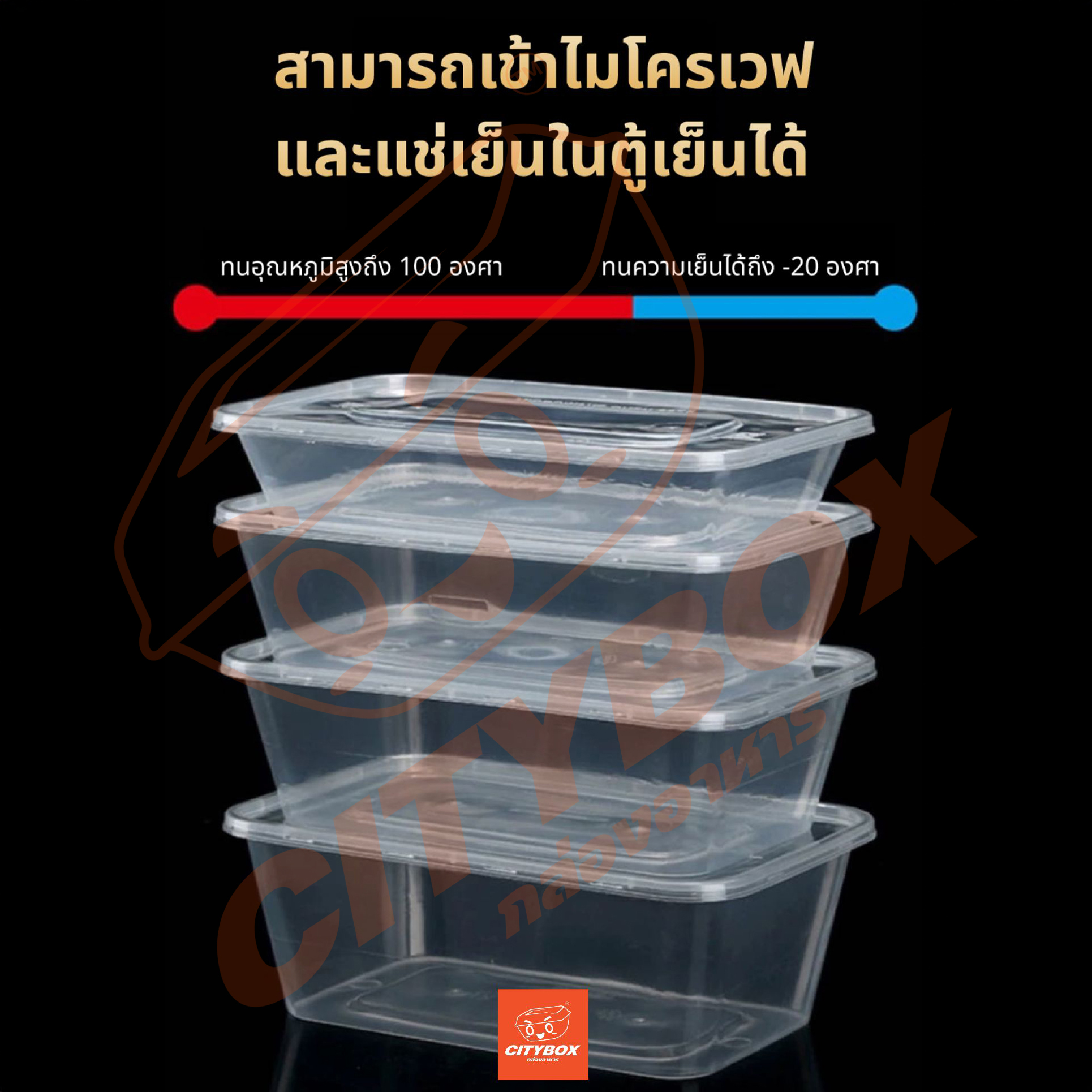 Citybox กล่องพลาสติก กล่องใส่อาหาร 25 ชิ้น พร้อมฝาล็อคแน่น เข้าไมรโคเวฟได้ สีดำและสีใส 5006507501000 ML