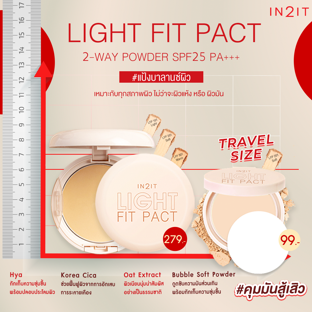แป้งบาลานซ์ผิว IN2IT Light Fit Pact แป้งพกพาสำหรับหน้าที่ช่วยปรับผิวให้สมดุลและเนียนเรียบ เหมาะสำหรับผิวขาวและใช้งานง่ายด้วยขนาดพกพาที่สะดวกสบาย. – Lazada