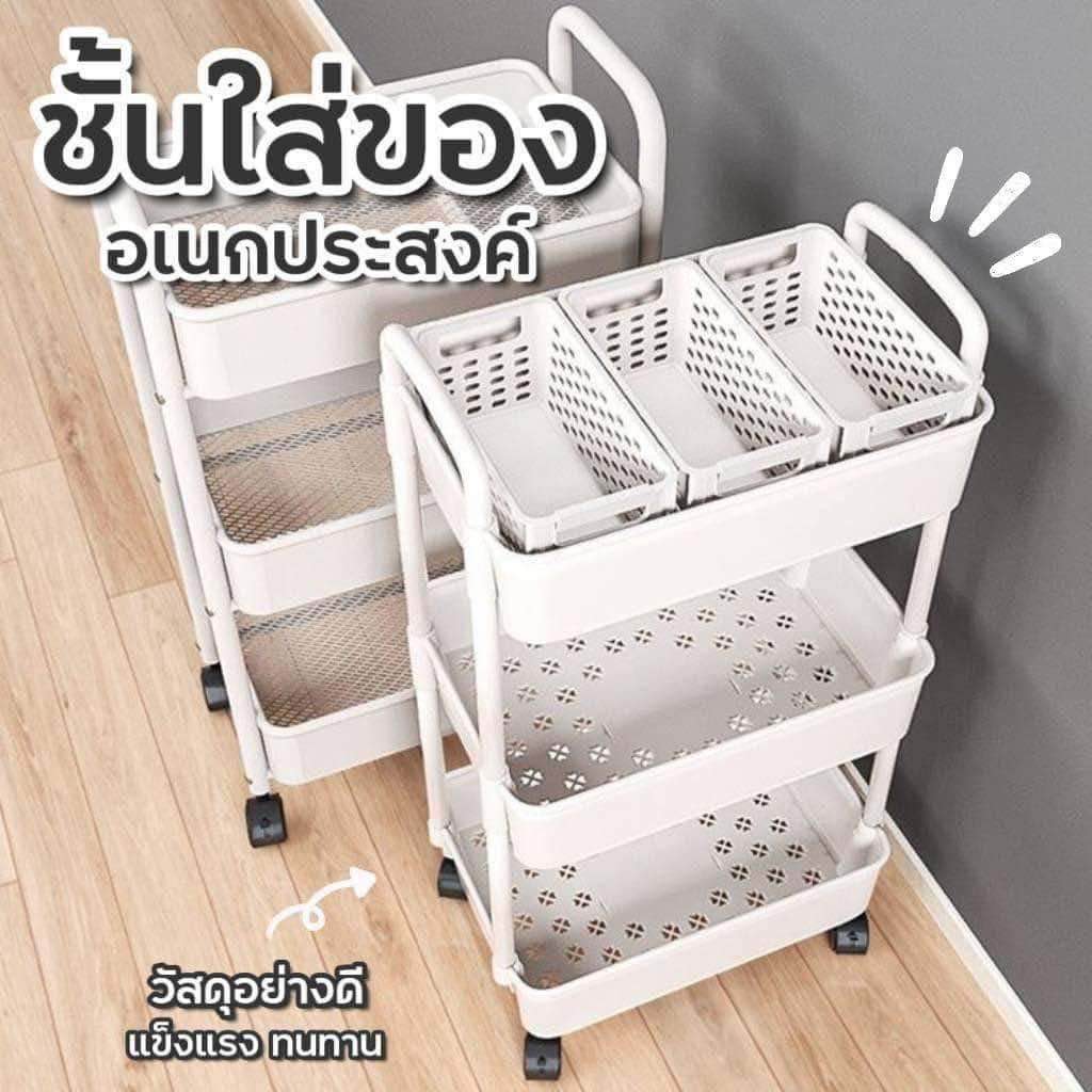ชั้นวางของรถเข็น พลาสติก 3 ชั้น สี ขาว-ดำ