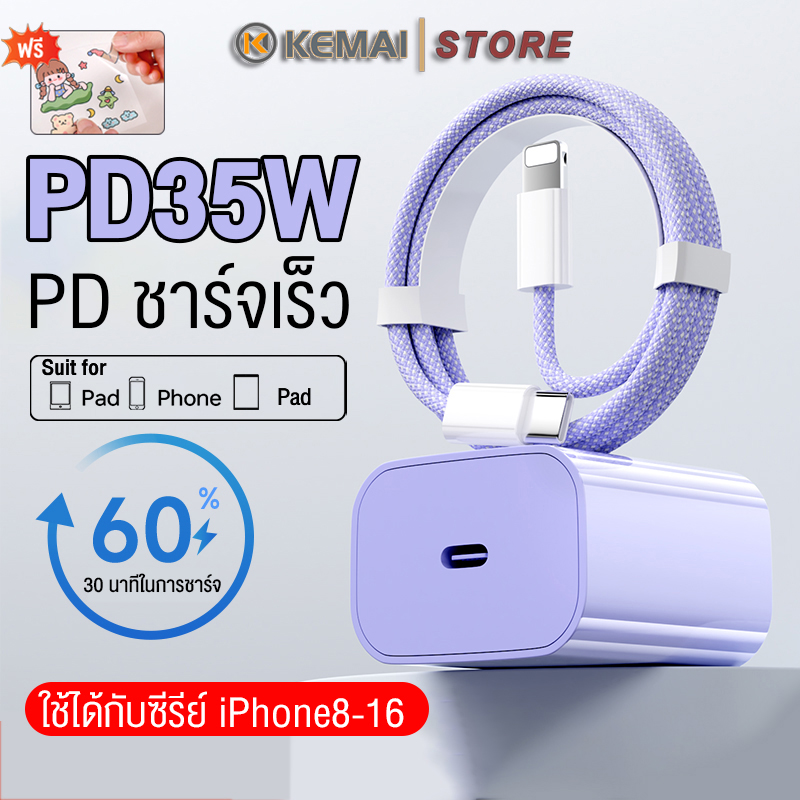 ชุดชาร์จ PD35W หัวชาร์จ 35W + สายชาร์จเร็ว USB to Lightning/C to C สายชาร์จถักรองรับโปรโตคอลชาร์จเร็ว เหมาะกับ iPhone8-16 ซีรีส์